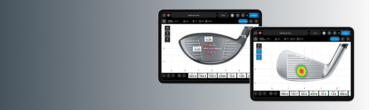 Face Impact Location enables the user to view the precise location of impact for every club and compare it to the data for that shot. Face Impact Location also adds two additional data parameters and features: lateral impact, vertical impact, and heat mapping.